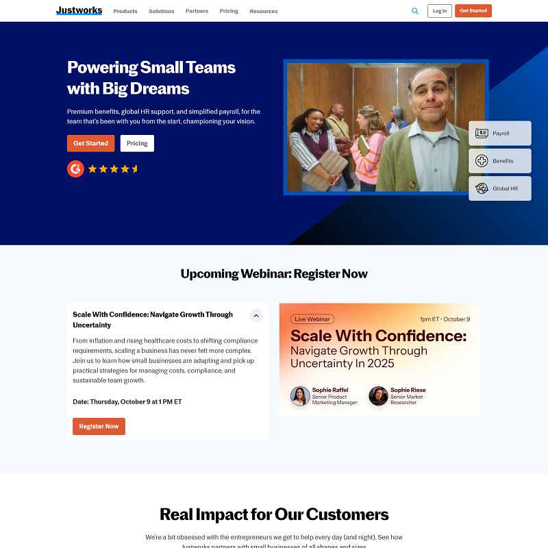 If you’re a 5-person startup paying employees in multiple states, or a growing company without a dedicated HR staff, Justworks is designed for you. Its PEO model gives you:
